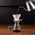 This dripper lacks internal ribbing, so paper filters stick to it as coffee flows down the star-shaped grooves to slowly brew.