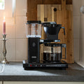 - CERTIFIED BY ECBC AND SCA Technivorm Moccamaster works closely together with leading international coffee research centres such as the European Coffee Brewing Centre and the Speciality Coffee Association. The 10-cup coffee (1.25 L) is brewed quiet and fast in 5-6 minutes with Auto-Safety Shut-Off (AO) safety feature. Compatible with 1 x 4 filters.